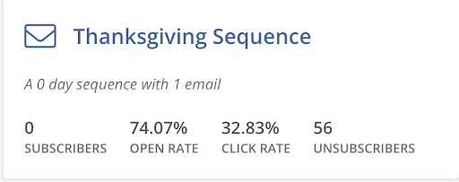 An image showing open rates for a quick start guide campaign, turned off so there are no longer active subscribers.