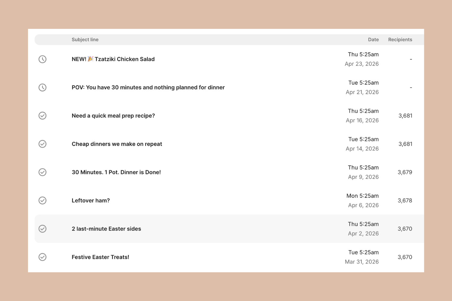 An example of email campaigns sent by a food blogger.